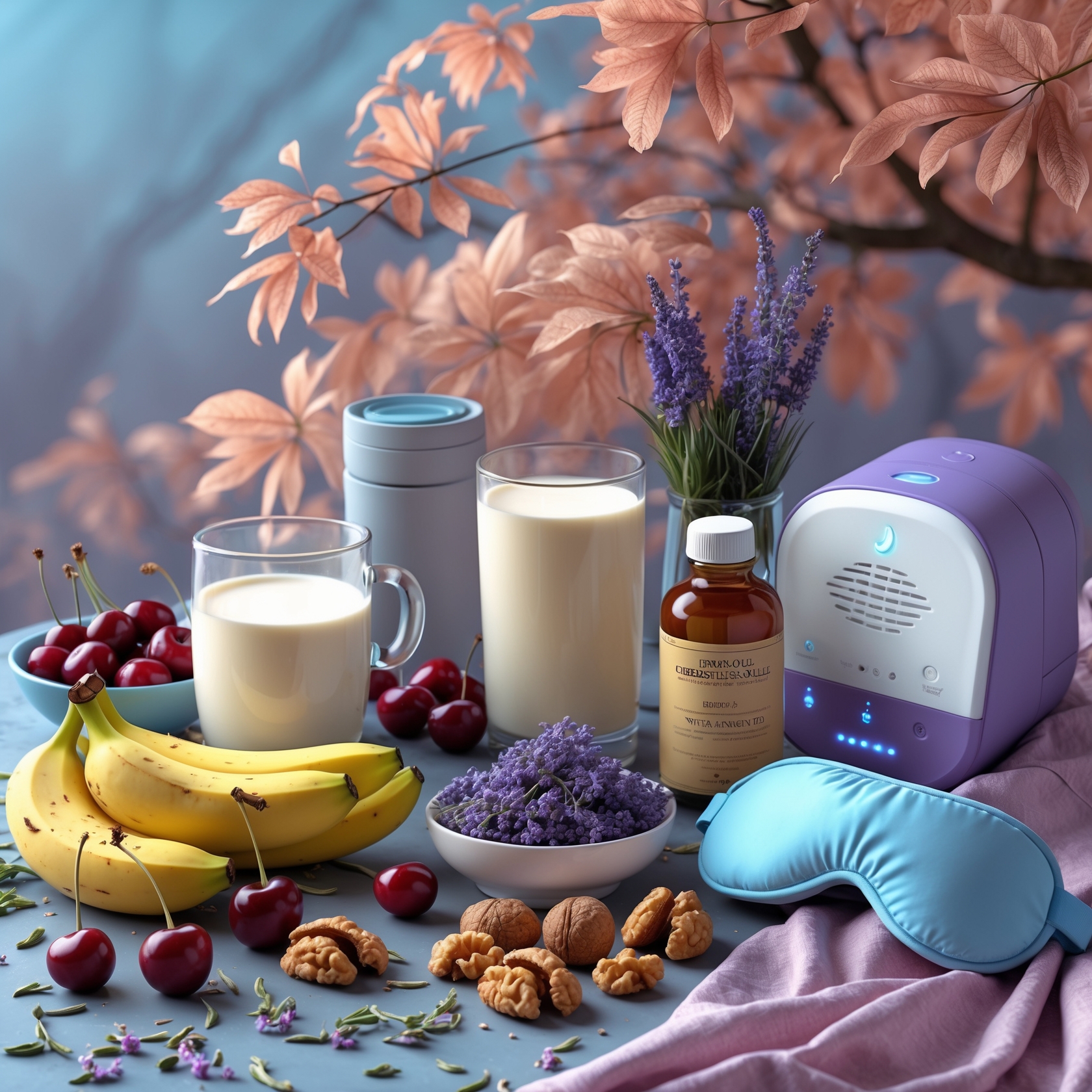 - 음식(Foods): 체리(멜라토닌), 바나나(마그네슘), 호두, 따뜻한 우유, 카모마일 차